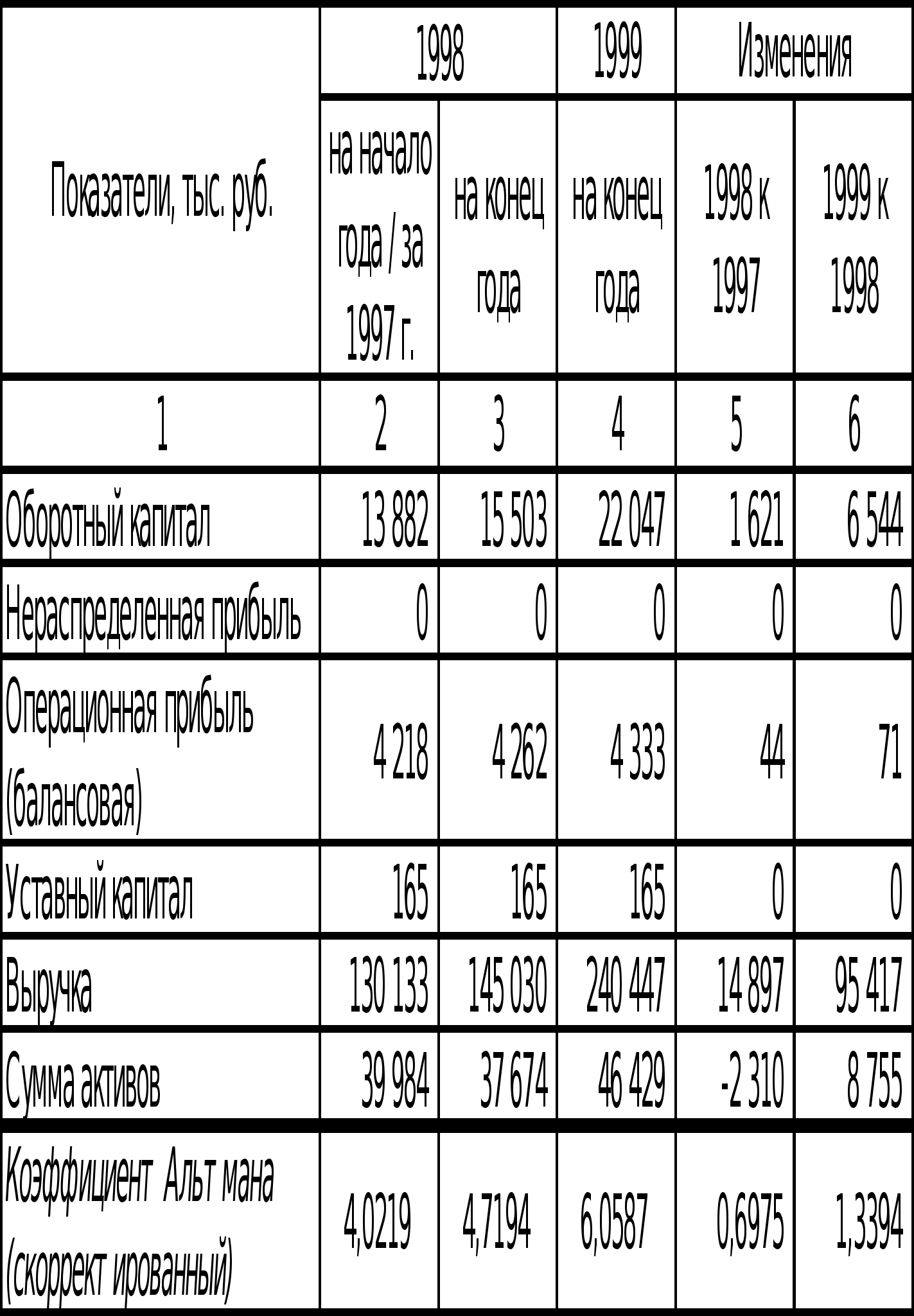 | Коэффициент Альтмана (скорректированный) | 4,0219 | 4,7194 | 6,0587 | 0,6975 | 1,3394 |