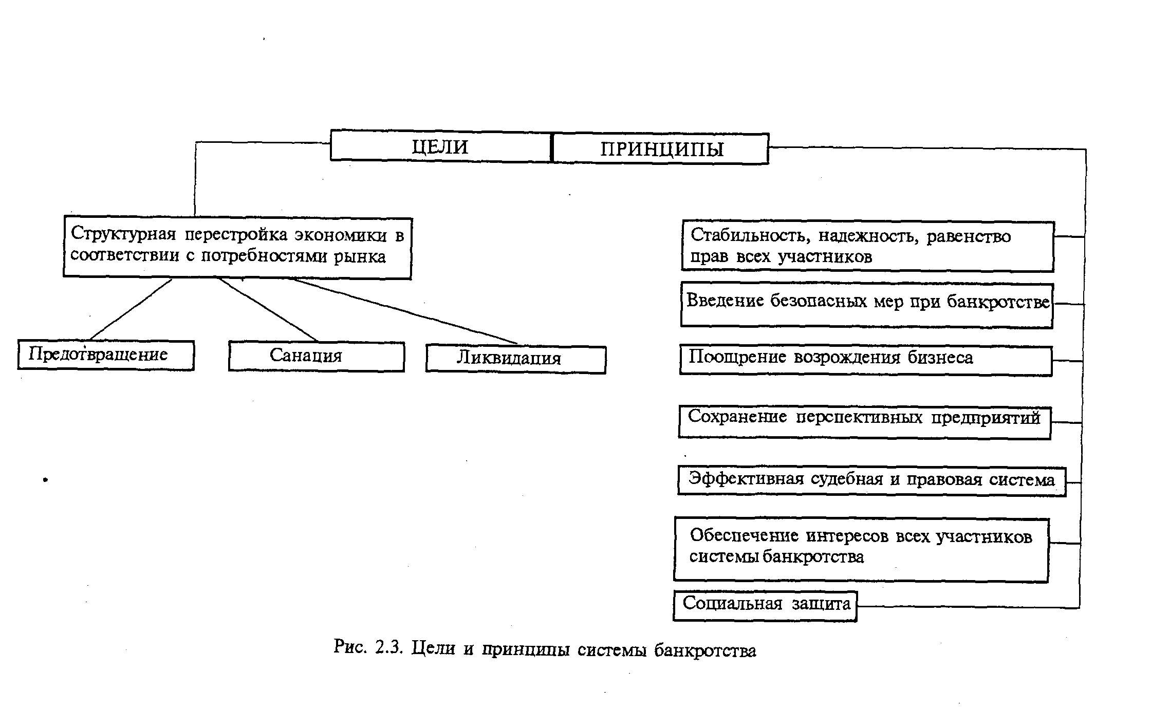 Рыночная экономика на протяжении многих десятилетий и столетий, являющаяся основой развития западных стран, выработала определенную систему контроля, диагностики и, по возможности, защиты предприятий от полного краха, или систему банкротства (Рис. 1.2). Достаточная универсальность этой системы делает ее приемлемой для разработки с учетом особенностей национальной экономической политики, механизма защиты предприятий и предотвращения их от банкротства в Российской Федерации (РФ).