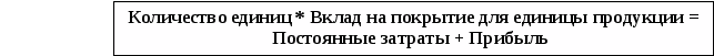 Вклад на покрытие постоянных затрат и формирование прибыли – это разность выручки от реализации продукции и переменных затрат на производство этой продукции.
