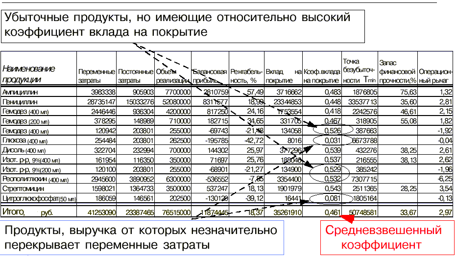 В данной работе рассматривается не стандартный способ подхода к определению дохода и анализу структуры затрат. Достаточно часто доход определяют как состоящий из постоянных затрат, переменных затрат и прибыли, а в качестве определяющего фактора успеха предприятия выделяют прибыль. В данной же работе рассматривается подход к доходу как состоящему из переменных затрат и вклада на покрытие. Кроме этого здесь рассматриваются способы анализа производственной организации и её продуктовой программы с помощью коэффициентов определяемых из вклада на покрытие.