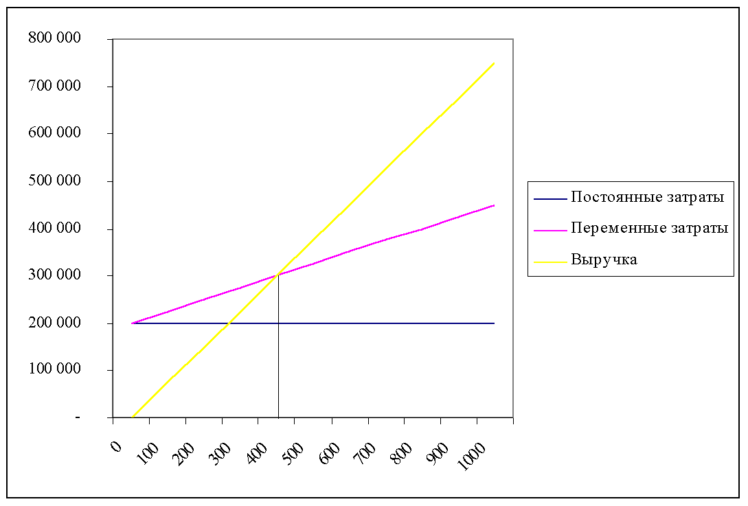 Точка безубыточности - это величина объема продаж, при которой предприятие будет в состоянии покрыть все свои издержки (постоянные и переменные), не получая прибыли.