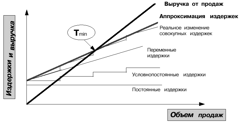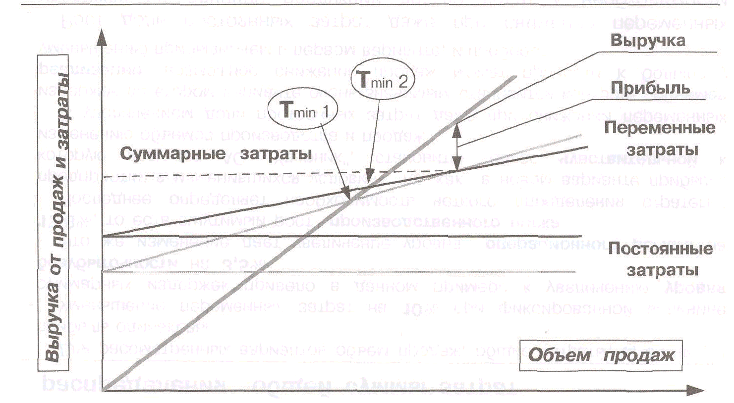 Объем продаж в точке безубыточности ( T min ) в стоимостном выражении равен: