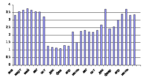 Несмотря на увеличение доходов российского бюджета в % от ВВП, в долларовом выражении они только сейчас выходят на докризисный уровень. Таким образом, если объемы выплат по внешним долгам в 1998 и 1999 гг. в номинальном выражении почти не отличались, то их доля в бюджетных доходах составила 31 и 45%. Кроме того, увеличение бюджетных доходов происходит на фоне исключительно благоприятной конъюнктуры, и ее ухудшение в дальнейшем может привести к снижению платежеспоспобности правительства (см.график)
