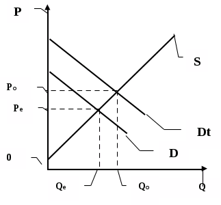 ынок сталкивается и с проблемой положительных внешних эффектов, когда производство или потребление какого-либо блага порождают не компенсируемые выгоды у третьей стороны. Например, услуги здравоохранения или образования приносят выгоду не только тем, кто эти услуги непосредственно получает и оплачивает, но и обществу в целом. А это значит, что истинная предельная полезность данного блага с точки зрения общества выше, чем предельная полезность с точки зрения индивидуума, оплачивающего это благо. Другими словами, рынок в денежной форме как бы недооценивает полезность этого блага, а следовательно, и не доплачивает за него. На рис. 2 это проиллюстрировано графически. Кривая реального спроса Q занижает общую сумму выгод, получаемых обществом от потребления данного блага (которая показана кривой Dт). В результате равновесный объем предложения (Pе и равновесная цена Ре оказываются меньше, чем оптимальный объем Po и оптимальная цена Ро. Таким образом, при наличии положительных внешних эффектов рынок направляет на производство данного блага ресурсы в недостаточном количестве.Доказательству влияния содержания и распределения прав собственности, как на распределение ресурсов, так и на объем и условия обмена, на распределение и уровень дохода, на процессы ценообразования и внешние эффекты посвящена так называемая теорема Коуза.