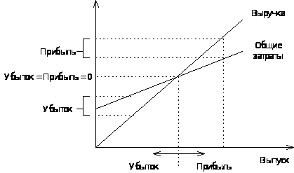 Точка безубыточности - это такой объем продаж продукции фирмы, при котором выручка от продаж полностью покрывает все расходы на производство продукции, в том числе среднерыночный процент на собственный капитал фирмы и нормальный предпринимательский доход.