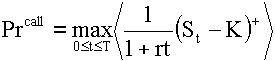 Как видно из рисунка, максимальное значение дисконтированного среднего выигрыша для обоих опционов достигается в конце интервала [0,T]. Это означает, что при выбранных параметрах премии опционов купли и продажи европейского и американского стиля совпадают и равны Prcall = 4.06, Prput = 3.07.