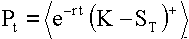 Рис.3. Дисконтированный средний выигрыш P>t> для опционов купли и продажи американского стиля