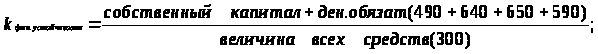 Рост данного коэф. на 0,025 в течение года показывает, что рост собственного капитала в общей величине всех источников увеличилась на 70%всех активов предприятия, сформированных за счет собственных средств.