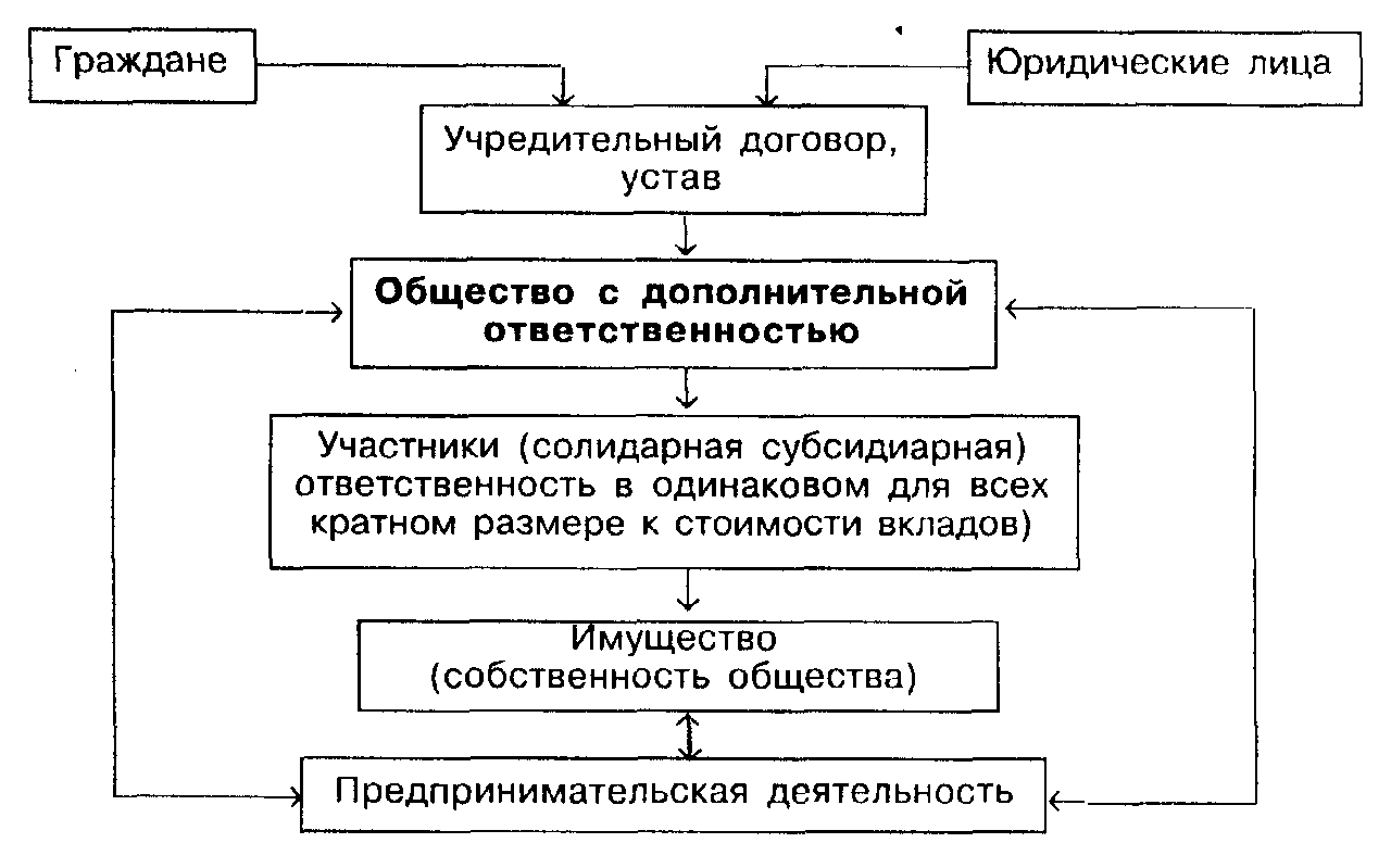 В отличие от обществ с ограниченной ответственностью в обществах с дополнительной ответственностью его участники, при недостаточности имущества общества, отвечают по обязательствам перед его кредиторами своим имуществом в одинаковом для всех участников кратном размере к сумме вкладов в уставный капитал, то есть несут субсидиарную ответственность по его обязательствам своим имуществом, аналогично участникам полных товариществ и полным товарищам в коммандитных товариществах.