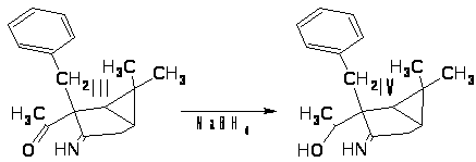 Полученный (3-амино-2-бензил-6,6-диметилбицикло[3.1.0]гекс-2-ил)метилкетон III был введен в реакцию с избытком боргидрида натрия для восстановлния карбонильной группы в спиртовую.