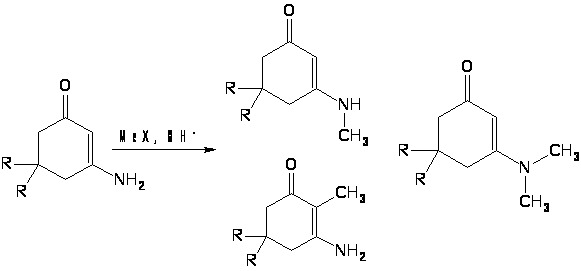 В работе [13] исследовано алкилирование 3-амино-5,5-диалкилциклогекс-2-ен-1-она для различных алкильных заместителей и проведен анализ факторов, необходимых для селективного направления алкилирования по тем или иным положениям изученного енаминона: