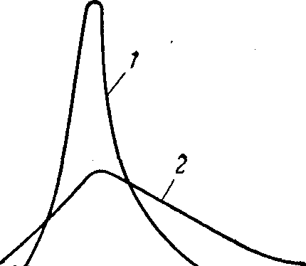 На рис. 1 показаны кривые распределения по молекулярному весу двух полимеров с одинаковой средней степенью полимеризации, но с различной полидисперсностью. Полимер, который характеризуется кривой 1, более однороден по молекулярному весу, чем полимер с кривой распределения 2.