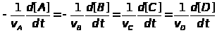 знак минус ставят, когда скорость выражается через убыль концентрации исходного вещества, чтобы скорость была положительной величиной. Скорость выражается через прирост концентрации иода водорода, разделана на стехиометрический коэффициент 2, чтобы все три выражения были численно одинаковы.