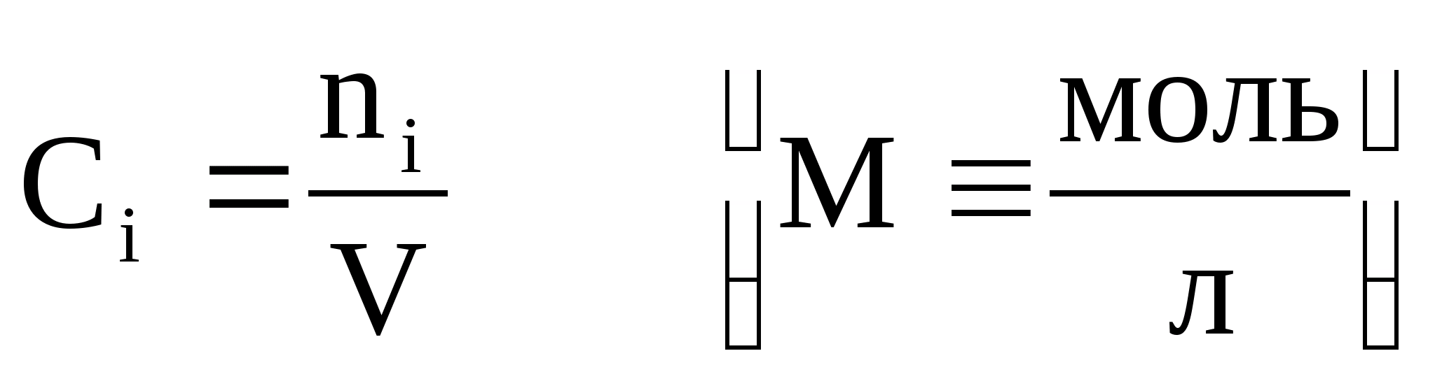 Определяется отношением числа молей растворенного вещества к объему раствора, выраженному в литрах. Физический смысл молярной концентрации заключается в том, что она указывает на число молей вещества содержащегося в 1 литре его раствора.