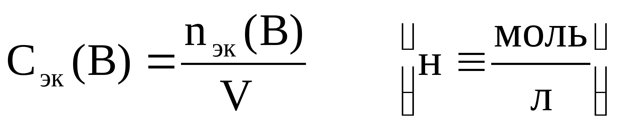 Определяется отношением числа эквивалентов растворенного вещества B к объему раствора, выраженному в литрах. Физический смысл нормальной концентрации заключается в том, что она указывает на число эквивалентов растворенного вещества, содержащегося в 1 литре раствора.