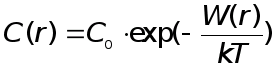 Уравнение (6) совместно с (3) и с соответствующими начальными и граничными условиями описывает эволюцию поля концентраций примесных комплексов С(r), а при t®¥ — равновесное состояние. В случае ограниченного числа частиц граничными условиями являются: на внешней поверхности j=0, на внутренней границе раздела Si—Si02, j=VsC, где Vs— коэффициент поверхностного массопереноса границы раздела кремний—окисел . Переходя в уравнении (6) к безразмерным переменным :