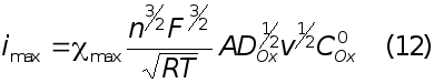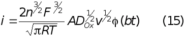 Найденная любым из приведенных способов функция определяет форму вольтамперных кривых в случае обратимого электродного процесса. Уравнение тока пика легко получили на основе уравнения (7) и графика функции (8 - 11). Это выражение известно как уравнение Рендлса - Шевчика:
