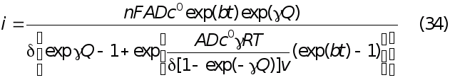 Делахеем и Берзинсом [9] была найдена функция, определяющая форму вольтамперной кривой в случае обратимого растворения объемного осадка металла (активность осадка принимается равной 1). В этом случае краевое условие принимает вид