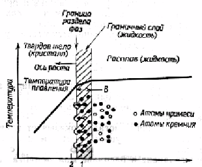 Применительно к кремнию этот процесс может быть охарактеризован как однокомпонентная ростовая система жидкость-твердое тело.