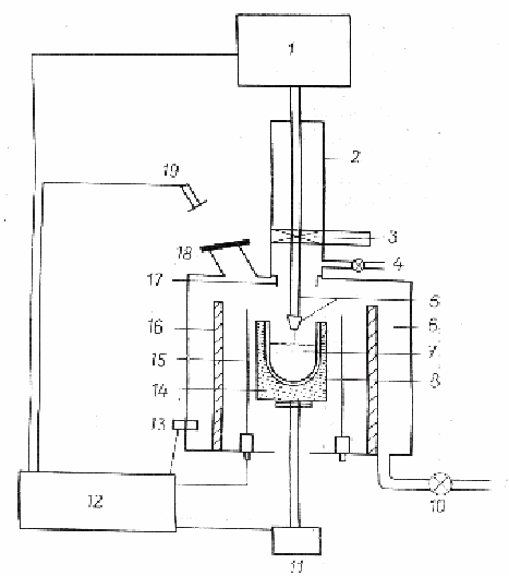 10.вакуумный насос 11.устройство вращения и подъема тигля