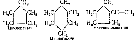 Состав нефти различных месторождений неодинаков. Грозненская и западноукраинская нефть состоят главным образом из предельных углеводородов. Бакинская нефть состоит преимущественно из циклических углеводородов — цикланов. Цикланы — это углеводороды, отличающиеся по своему строению от предельных тем, что содержат замкнутые цепи (циклы) углеродных атомов, например: