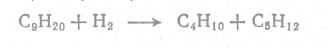 Нафтены расщепляются на углеводороды С>3>—С>4>, причем шестичленные нафтены в значительной степени изомеризуются в пятичленные; у некоторых, например у метилциклопентана, происходит раскрытие цикла без расщепления. Гидрокрекинг полициклических нафтенов, например декалина, протекает легче, чем гидрокрекинг соответствующих нормальных парафинов (C>10>H>22>); при этом получается относительно больше парафинов изостроения и моноциклических пятичленных нафтенов. Для производства высококачественного бензина наиболее важной реакцией при обычном гидрокрекинге является частичное гидрирование полициклических ароматических структур с последующим разрывом насыщенных колец и образованием замещенных моноциклических ароматических углеводородов. Боковые цепи, появляющиеся в результате такого разрыва, легко отщепляются.