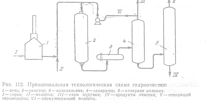 Гидроочистка нефтяных дистиллятов является одним из наиболее распространенных процессов, особенно при переработке сернистых и высокосернистых нефтей. Основной целью гидроочистки нефтяных дистиллятов является уменьшение содержания в них сернистых, азотистых и металлоорганических соединений. При гидроочистке происходит разложение органических веществ, содержащих серу и азот. Они реагируют с водородом, циркулирующим в системе, с образованием сероводорода и аммиака, которые удаляют из системы.