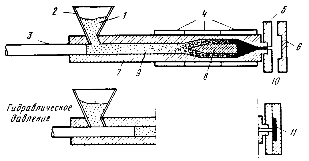 Прежде чем перейти к обсуждению разнообразных методов переработки полимеров, напомним, что полимерные материалы могут быть термопластичными или термореактивными (термоотверждающимися). После формования термопластичных материалов под действием температуры и давления перед освобождением из пресс-формы их следует охлаждать ниже температуры размягчения полимера, так как в противном случае они теряют форму. В случае термореактивных материалов такой необходимости нет, поскольку после однократного совместного воздействия температуры и давления изделие сохраняет приобретенную форму даже при его освобождении из пресс-формы при высокой температуре.