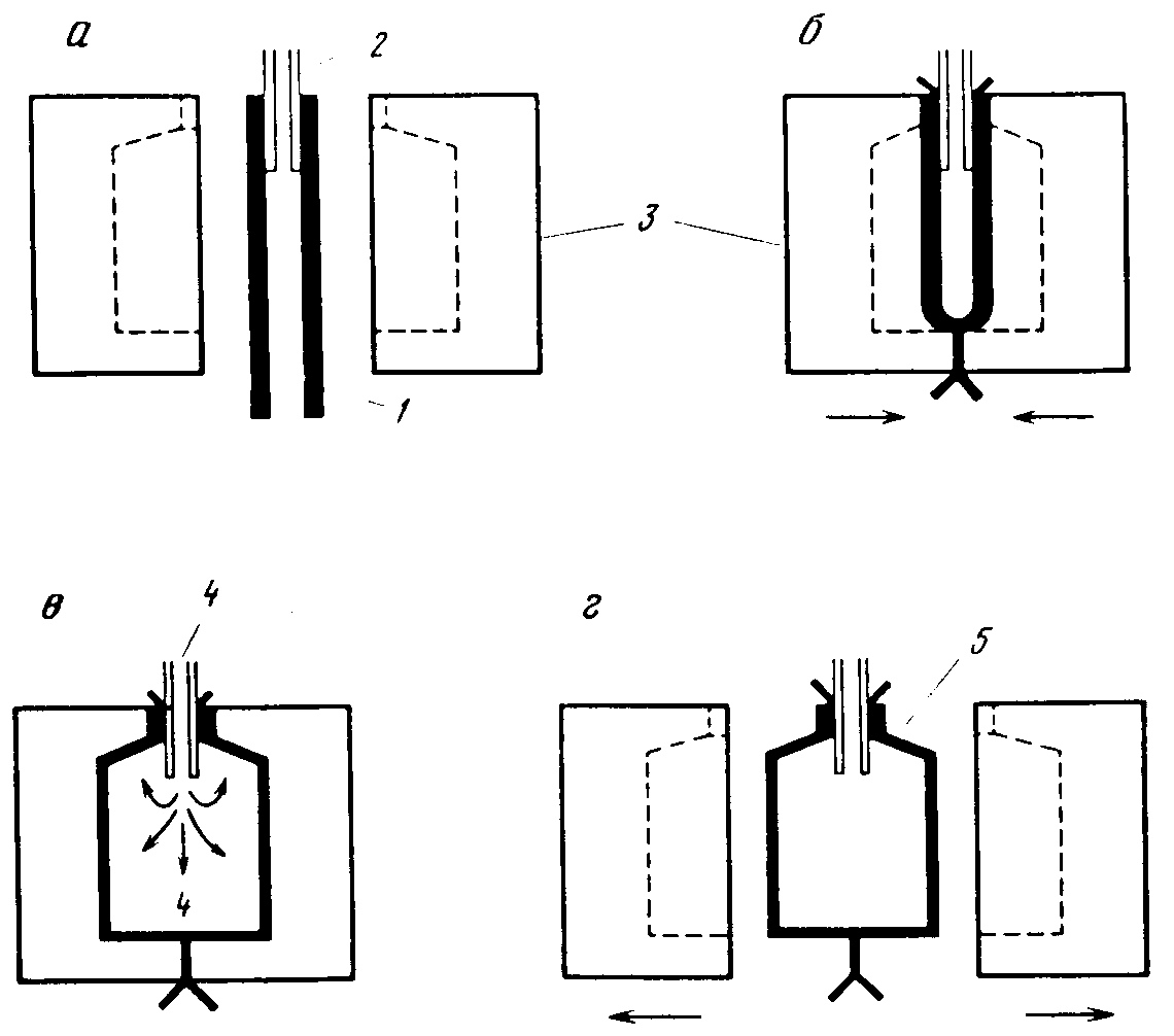 РОТАЦИОННОЕ ЛИТЬЕ. Полые изделия, такие, как мячи и куклы, получают в процессе, называемом "ротационное литье". Аппарат, используемый в этом процессе, представлен на рис.3.