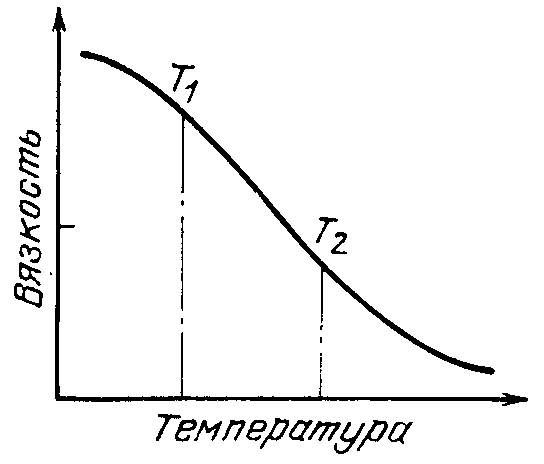Рис.1. Схематическая диаграмма вязкости термопластичных полимеров в зависимости от температуры: Т>1> – температура перехода из стеклообразного в высоко эластичное состояние, Т>2> – температура перехода из высокоэластичного в вязкотекучее состояние.