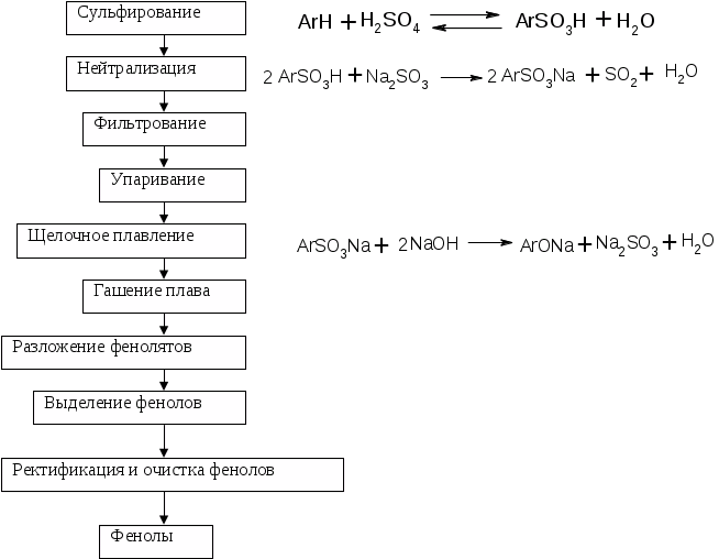 Классическим методом синтеза фенолов является щелочное плавление сульфокислот ароматических углеводородов
