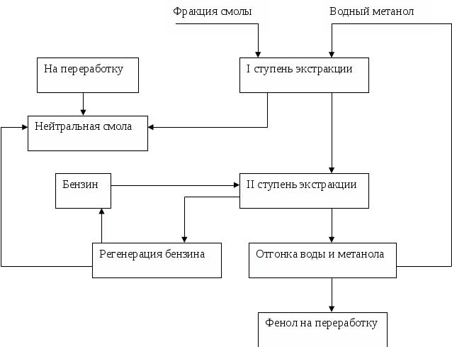 Рис. 1.1. Схема экстракции фенолов из фракции смол коксования и полукоксования углей водным метанолом.