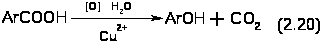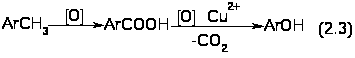 Окислительное декарбоксилирование арилкарбоновых кислот проводится при 200—300°С в присутствии солей двухвалентной меди при подаче в реактор воздуха и водяного пара.