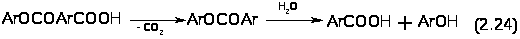 В присутствии водяного пара возможен гидролиз кислых эфиров с образованием исходных арилкарбоновых и оксиарилкарбоновых кислот. Последние декарбоксилируются до фенолов.
