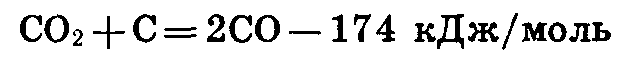 Диоксид углерода поднимается вверх в печи и реагирует с новыми порциями кокса, образуя моноксид углерода. Эта реакция эндотермична: