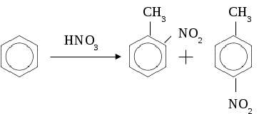 Толуол по своему строению подобен бензолу, отличием является лишь замещение одного атома водорода на группу (CH>3>).