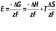 где F = 96500 Ас/(гэкв) = 26,8 Ач/(гэкв) – число Фарадея, z- число электронов, участвующих при электрохимическом превращении одной молекулы вещества. Значение ЭДС обратимого топливного элемента можно записать