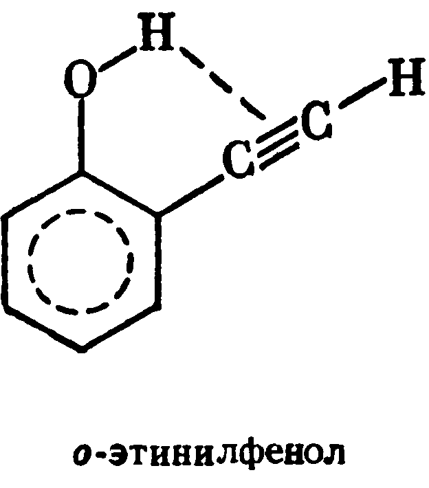 В большинстве случаев образования внутримолекулярной водородной связи водород входит в плоское шестичленное кольцо; если возникновение такого цикла затруднено, то внутримолекулярная водородная связь обычно не образуется. Вот несколько примеров образования внутримолекулярной водородной связи: