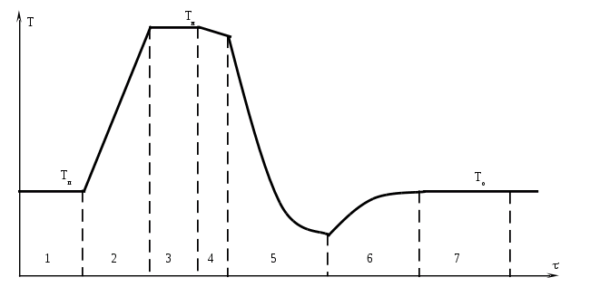 Рациональная среднемассовая температура предварительного подогрева для всех типоразмеров валков находится в пределах Т>п>500С. При более низких температурах велика опасность разрушения валка при быстром нагреве бочки из-за недостаточной пластичности слабо прогретой сердцевины валка. С ростом температуры предварительного подогрева повышаются остаточные напряжения после ДТО и, следовательно, растет вероятность разрушения валка после окончания режима. Требуемая равномерность температуры печи в конце подогрева 5С.
