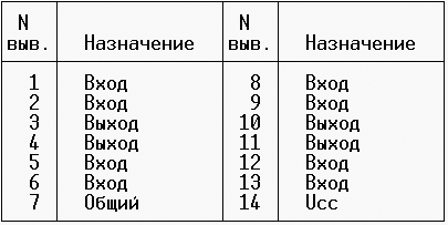 Краткое описание используемых микросхем (УГО, таблица истинности, назначение контактов) 5