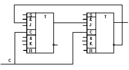Для задания наборов аргументов логических функций используется генератор кодов, основой которого является пятиразрядный счётчик, построенный на Т - триггерах (из элементов 155-ой серии). На прямых выходах счётчика, выведённых на наборное поле передней панели стенда, можно получить 32 различные комбинации или 32 двоичных числа. Через соответствующие гнёзда каждый из пяти разрядов счётчиков может быть установлен в “1” или “0”. Кроме того, подключив вход счётчика (Сч) к выходу генератора одиночных импульсов (“0”-“1”), можно обеспечить последовательный перебор кодовых комбинаций: каждое нажатие кнопки (Кн) увеличивает число, записанное в счётчике, на единицу. Схема и временная диаграмма работы генератора одиночных импульсов, построенного на основе антидребезгового триггера, приведена на рисунке 4.