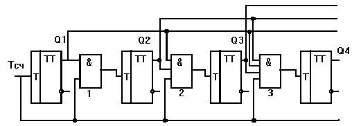 Для индикации состояний разрядов счётчика, а также логических элементов используются индикаторные лампочки. Горение лампочки означает наличие кода “1” на выходе соответствующего элемента.