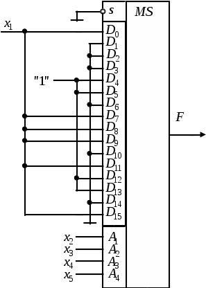 Взаимное расположение аргументов должно быть чётко фиксированно, например, будем считать, что X>1> - это первый разряд (младший), X>2> - второй разряд, X>3> - третий разряд, X>4> - четвертый разряд и X>5> - старший разряд. Четыре младших разряда определяют номер клетки внутри ос-