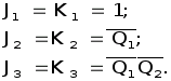 Если несколько функций принимают на всех наборах одни и те же значения, то эти функции равносильны. Получаем, что F>1>= F>2>= F>3>.