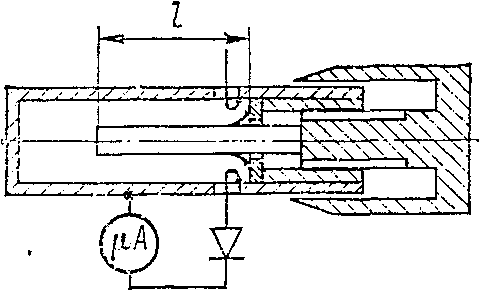 Четвертьволновый резонансный частотомер представляет собой разомкнутый отрезок коаксиальной линии (рис. 6). Настройка его осуществляется с помощью микрометрического механизма со шкалой, градуированной в единицах длины I. Резонанс, в линии наступает при I, равной нечетному числу четвертей длины волны.