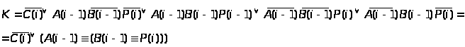 Которая заключается в следующем. Полю С(1) присваивается значение переноса в этот разряд P(1), который можно вычислить по схеме на рис. 2.2.5., а схема С(1) изображена на рис. 2.2.1. Полю С(2) присваивается значение инверсии переноса в этот разряд P(2) (рис. 2.2.7.), схема С(2) изображена на рис. 2.2.3. На поле С(3:25) происходит присвоение C(i) суммы B(i-1), инверсии A(i-1) и переноса P(i)(схема для С(i) на рис. 2.2.6., а для P(i) на рис. 2.2.7), где i = 3-25. Но перенос P(25) определяется иначе, на основе схемы рис. 2.2.11. На поле С(26) происходит подобная операция (С(26):=А(25)+В(25)) только без учета переноса, так как его не может быть (С(26) – последний разряд), схема дана на рис. 2.2.10. В результате этой микрооперации слово С принимает следующий вид: С=01.1001010
