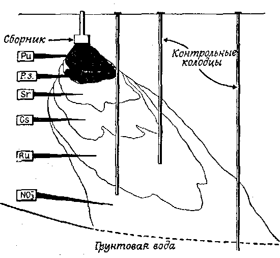 Фиг. 228. Захоронение в грунт высокоактивных жидких отходов.