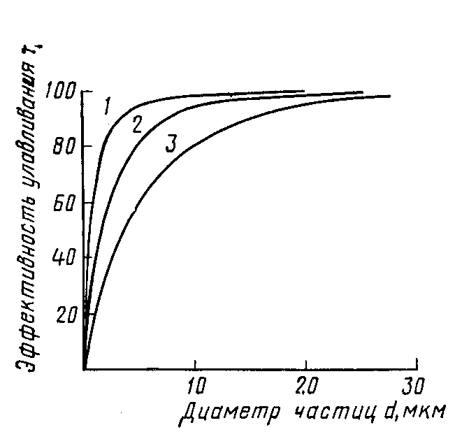 Скрубберы Вентури (см. рис 1) — высокоинтенсивные газоочистительные аппараты, но работающие с большим расходом энергии. Скорость газа в сужении трубы (горловине скруббера) составляет 100—200 м/с, а в некоторых установках — до 1200 м/с. При такой скорости очищаемый газ разбивает на мельчайшие капли завесу жидкости, впрыскиваемой по периметру трубы. Это приводит к интенсивному столкновению частиц аэрозоля с каплями и улавливанию частиц под действием сил инерции. Скруббер Вентури — универсальный малогабаритный аппарат, обеспечивающий улавливание тумана на 99—100%, частиц пыли с d = 0,010,35 мкм — на 50–85% и частиц пыли с d = 0,5-2 мкм — на 97%. Для аэрозолей с d = 0,3-10 мкм эффективность улавливания определяется в основном силами инерции и может быть оценена по формуле