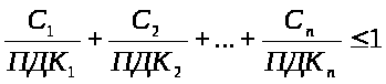 Некоторые вещества при одновременном присутствии в атмосфере воздухе обладают однонаправленным действием, т.е. эффектом суммации этом случае при оценке качества атмосферного воздуха должно выполняться следующее условие: