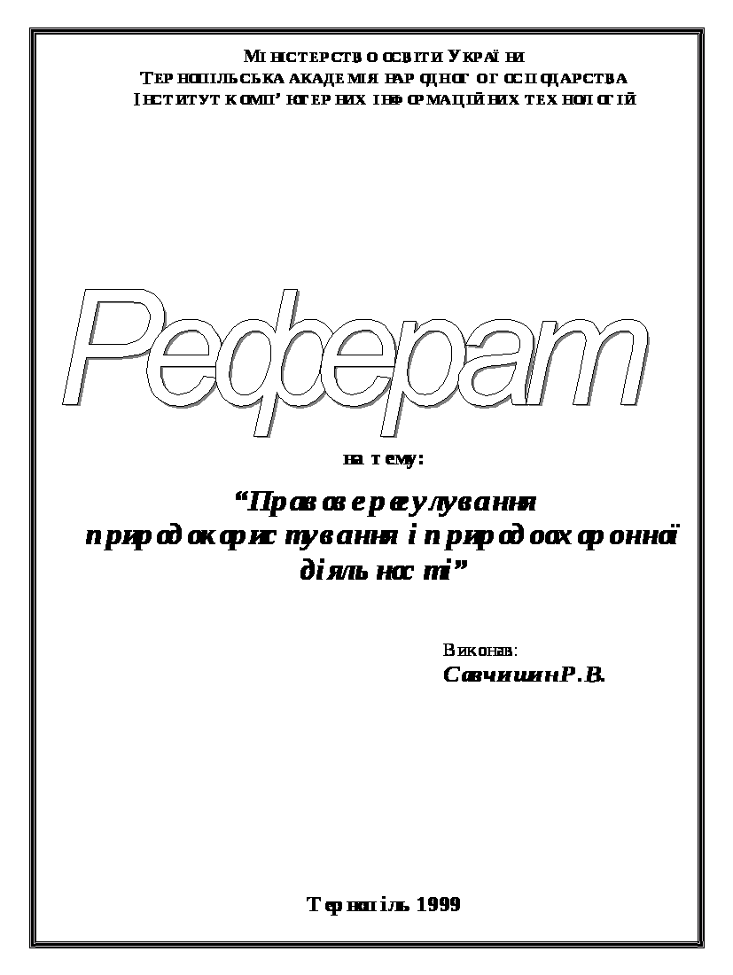 У нинішній час в Україні формується національна правова база. що .регулює ставлення людини до природного середовища. В цей перехідний період це законодавство має змішаний характер, оскільки поряд з новими законами продовжують діяти і деякі з правових актів, успадкованих від СРСР.